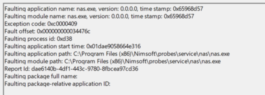 This causes an error in the NAS probe and the probe crashes.