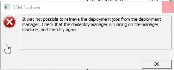 "It was not possible to retrieve the deployment jobs from deployment manager. Check that the dmdeploy manager is running on the manager machine, and then try again"
