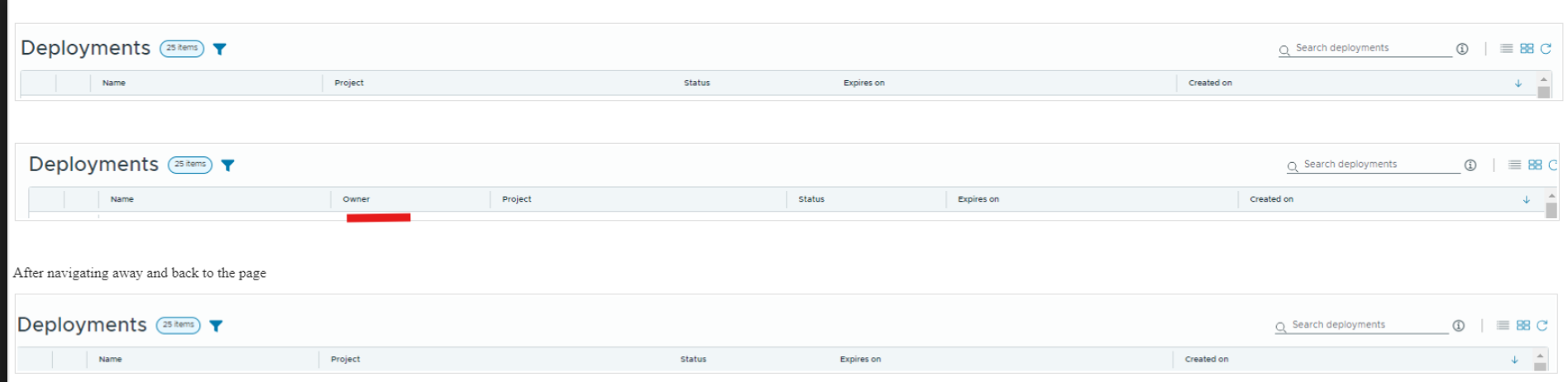 The owner field no longer appears under deployments and must be manually added each time; it doesn't persist when navigating away.
