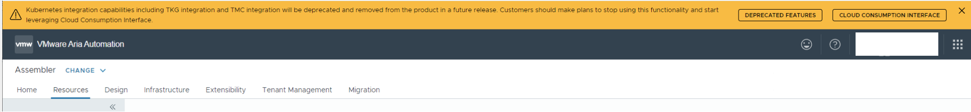 VMware by Broadcom is announcing the planned deprecation of Kubernetes integration capabilities, including the TKG integration and TMC integration documented under How do I work with Kubernetes in Automation Assembler. The actual deprecation and removal of these capabilities from the product will happen in a future release. Customers are encouraged to adopt the Cloud Consumption interface (CCI) and vSphere TKG IaaS service.