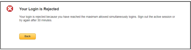 Sign out of one of the active sessions or wait 30 minutes for the session to time out automatically due to inactivity.