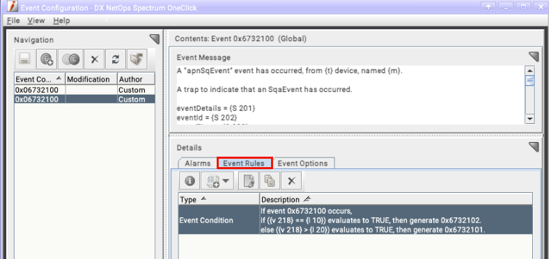 The EventCondition Rule on event 0x6732100 was evaluating variable 218 (sqPathServiceQuality) which appears to be the overall Path State.