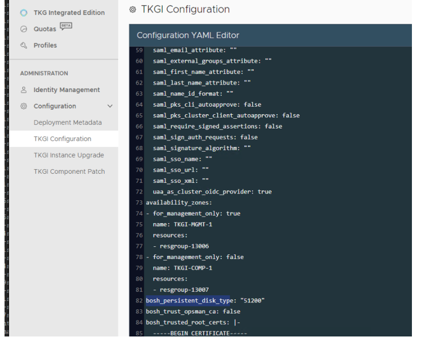 Then the TKGI Configuration YAML Editor page will appear and you can add the YAML data.