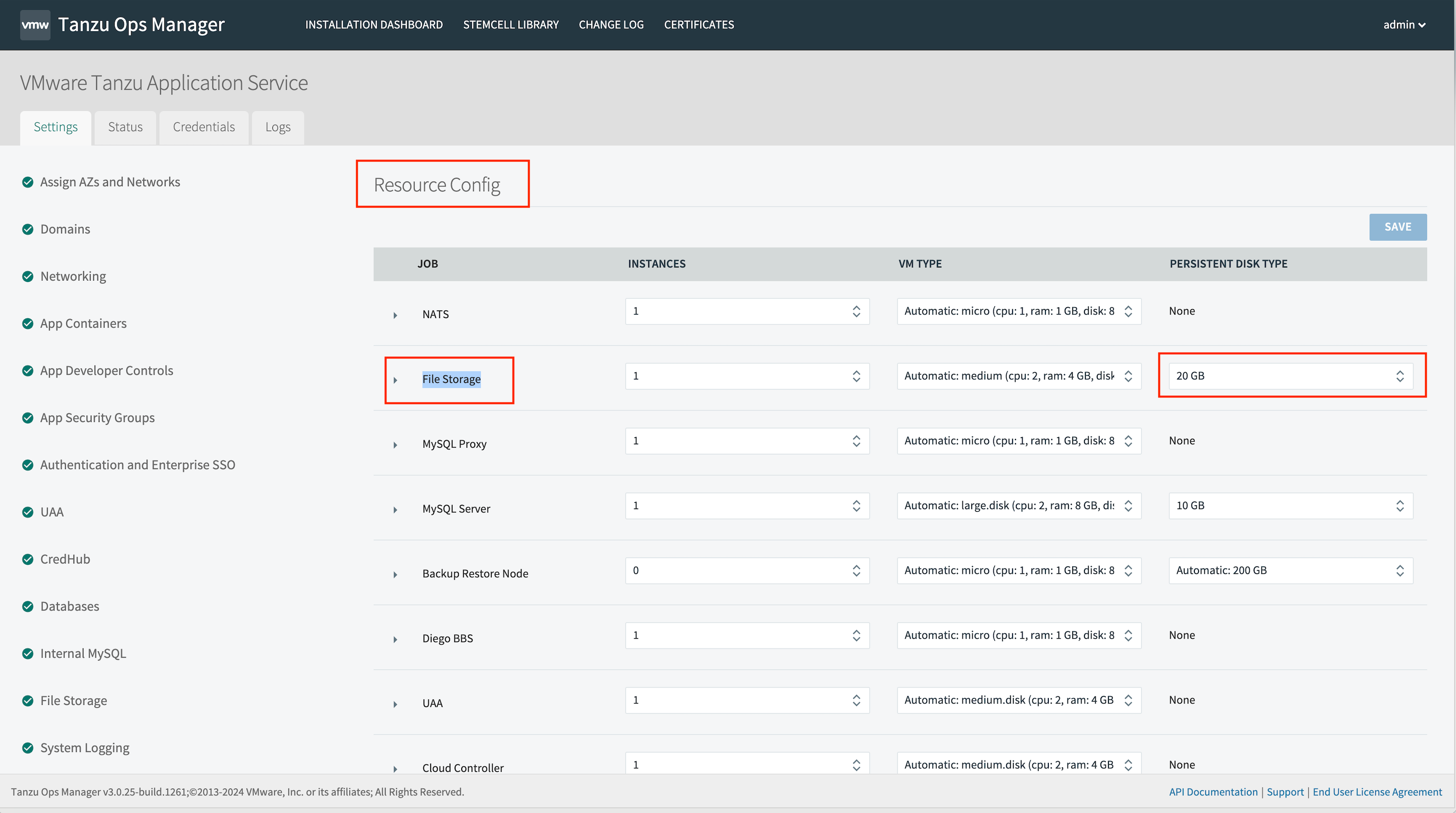 1. Per the documentation (Configure TAS - File Storage), set the maximum droplets and packages per application to be both 1 as seen in the image below. We can find this setting by clicking TAS tile > File Storage, and change the Maximum valid packages per app and Maximum staged droplets per app to 1 and click the save button.