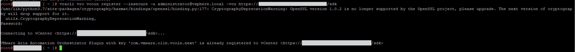 You would be prompted for the password for the username used above For more details, refer Configuring the VMware Aria Automation Orchestrator Plug-in for vSphere Web Client Note: if required you can attempt to disable and re-enable the vcoin options on orchestrator but would require to redeploy the pods post enabling or disabling the utility.