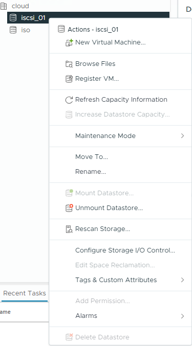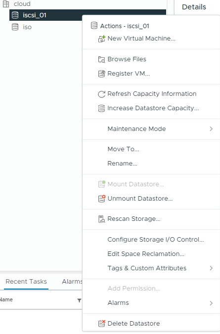 With this role added, we can see that the options for increasing,space reclamation, deleting the datastore are active and operational as well.
