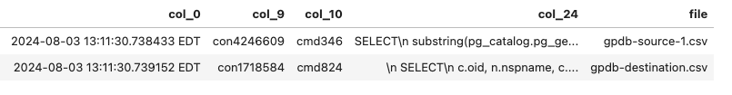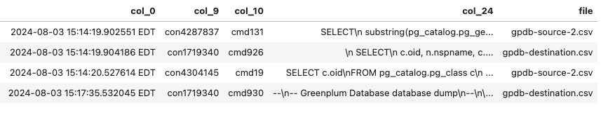 Taking one example view ("sample_vw") and focusing the comparison using GPCOPY log against the same view between schema_1 and schema_2, we can see "schema_2.sample_vw" unexplainably consumed significantly longer than "schema_1.sample_vw"