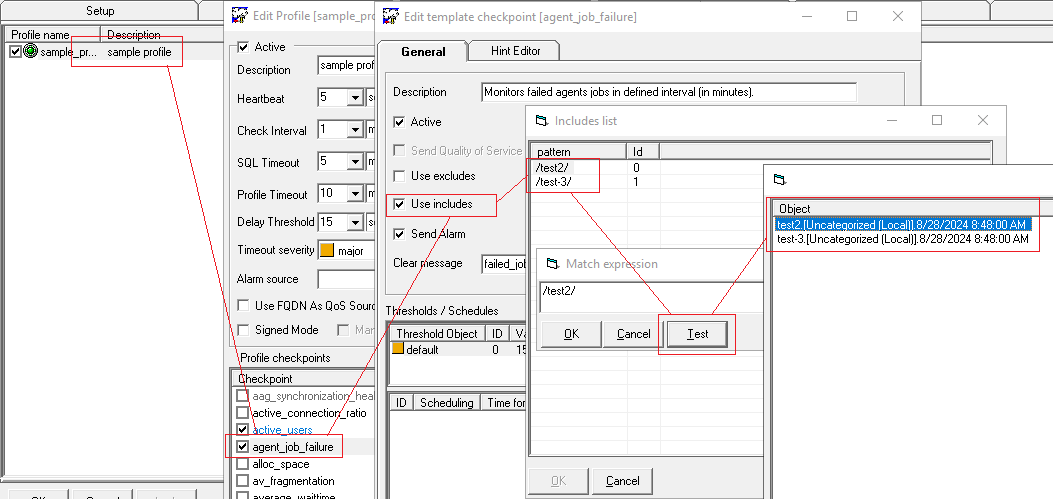 Test button grayed out for a new include, or exclude in sqlserver probe