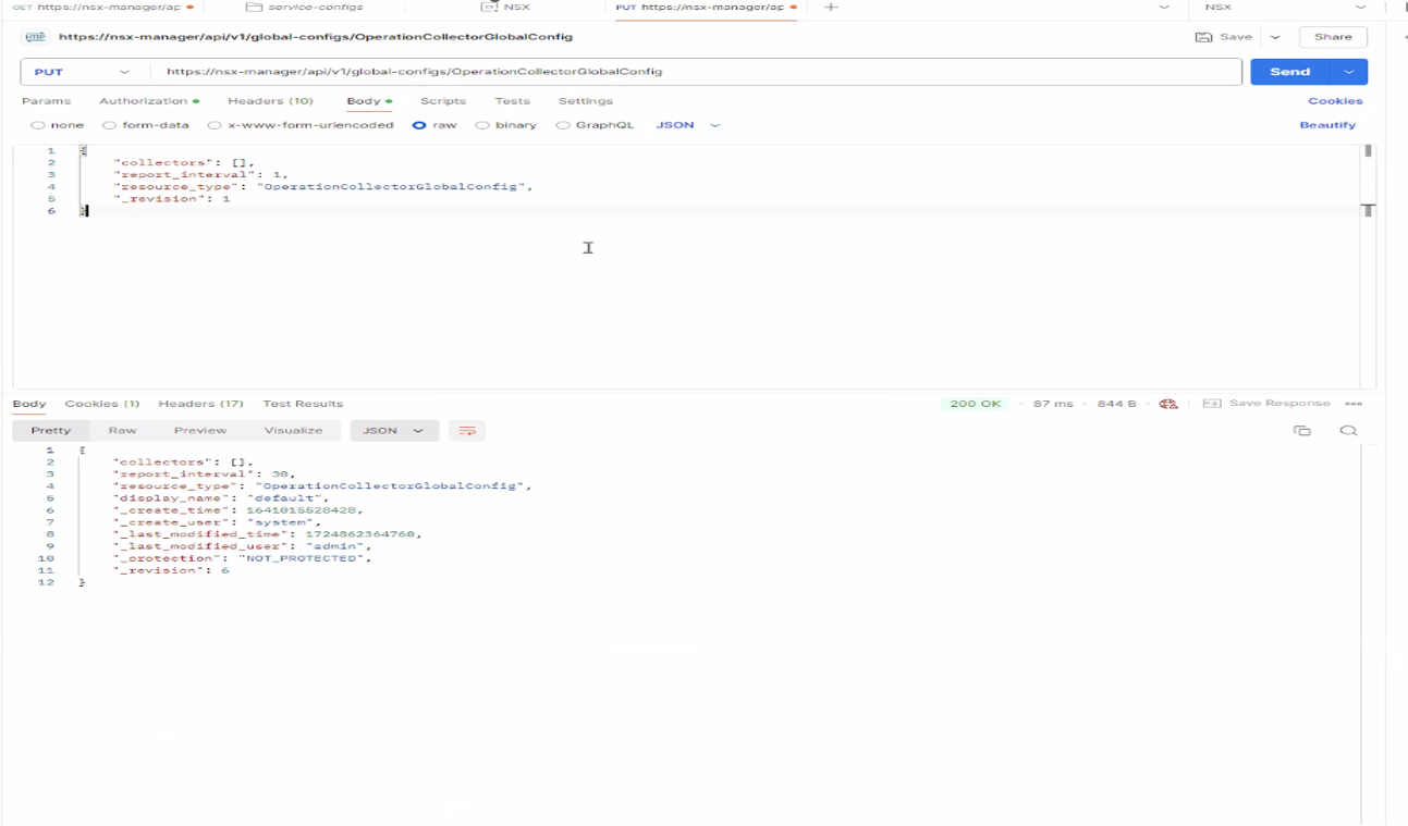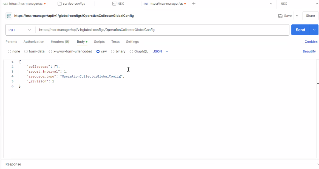 https://<NSX-T IP>/api/v1/global-configs/OperationCollectorGlobalConfig