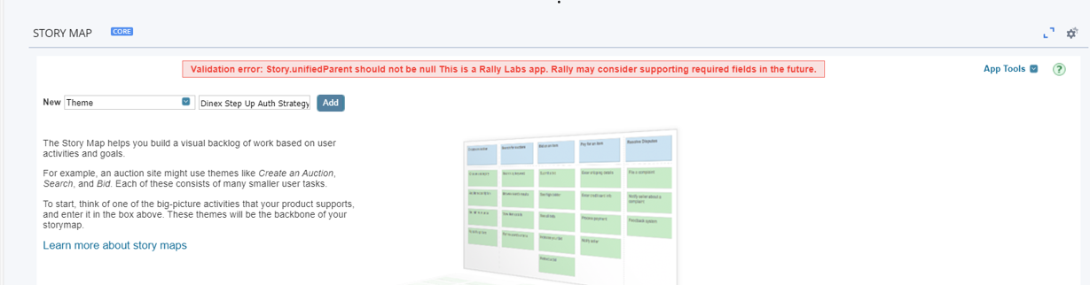 Users are experiencing validation errors with the Rally Story Map