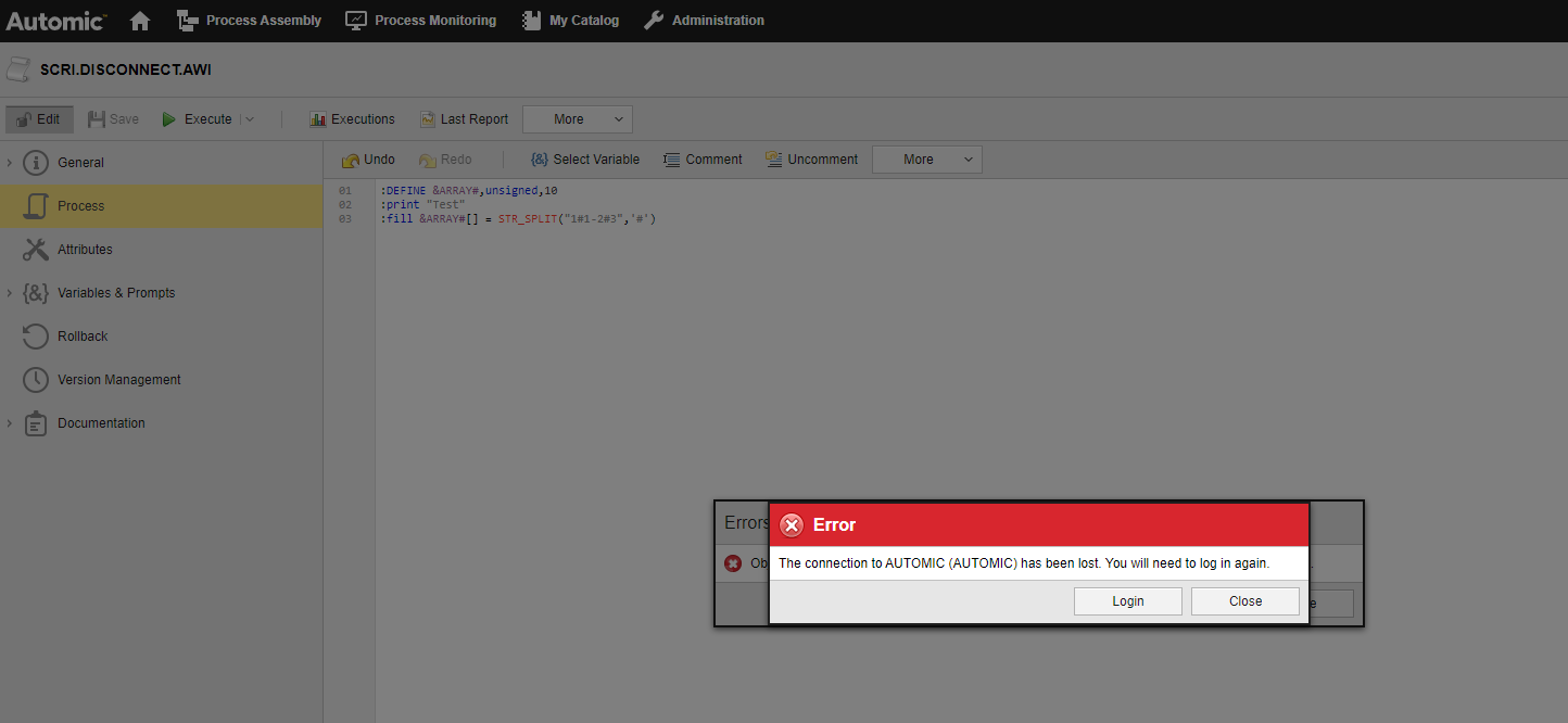 Caused by: com.uc4.communication.InternalException: Received document could not be parsed: '<uc-env request="oh_90" session="0000000001000044" redlight=" " useridnr="0001000003"><quitt idnr="0" msgNr="20440" msgInsert="SCRI.DISCONNECT.AWI|00003|010009|S">ok</quitt></uc-env>'