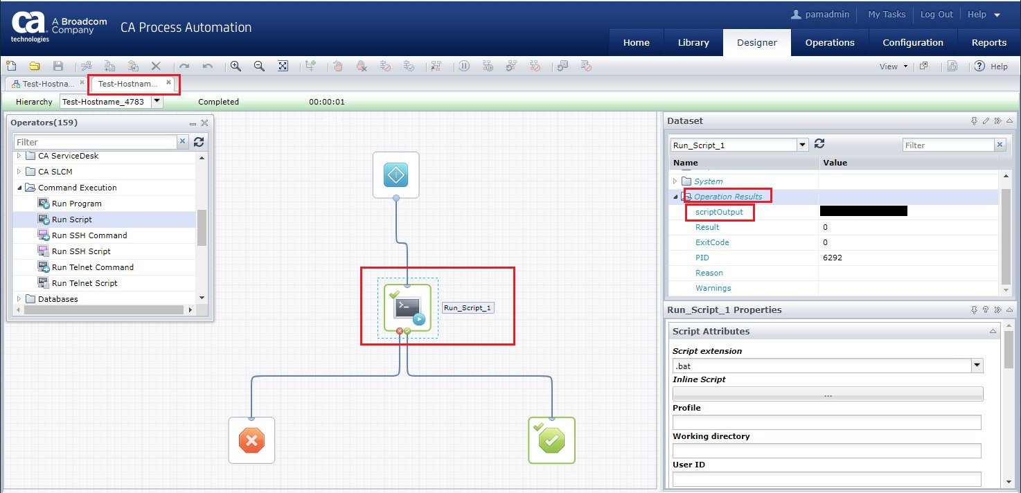 The process will run very quickly. To assess the process run and view the results, click on the Run_Script instance, then select the Operations Results to view the scriptOutput (make sure you have selected the correct process instance tab)