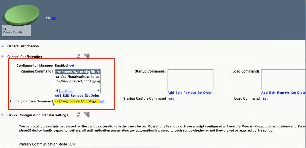 This can be done by creating a Custom Device Family for the F5 devices and using SSH to capture the configuration.