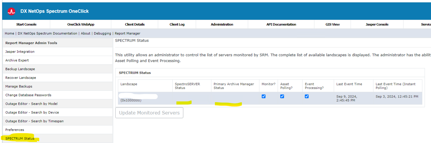 After upgrade to 23.3.1 we have no status icon on the spectrum status page for report manager.