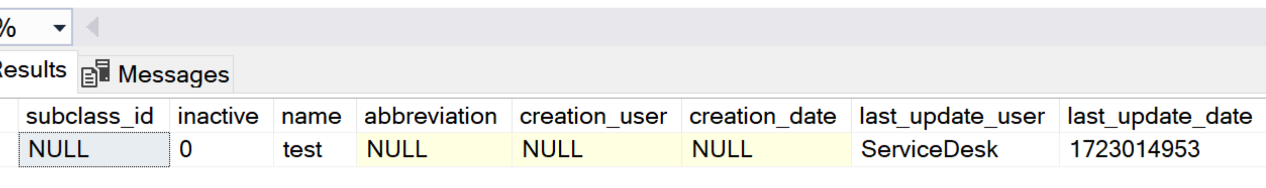 2. Run the query select * from ca_model_def where name = 'test' in DB and we see that creation_user and creation_date are NULL where as last_update_user and date are updated.