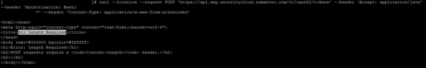curl -X POST https://api.sep.securitycloud.symantec.com/v1/oauth2/tokens -H “accept: application/json” -H “authorization: {{OAuth Credentials value}}" -H “content-type: application/x-www-form-urlencoded” -H "content-length: 0"