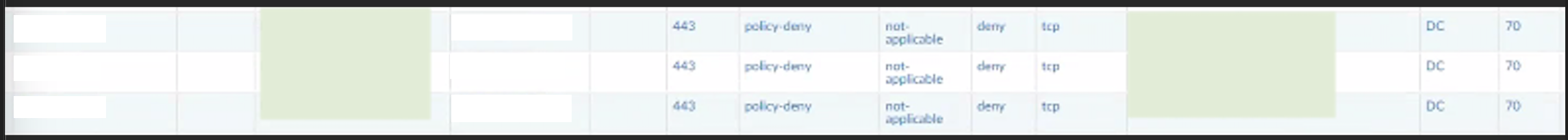 Physical flows collected from a Palo Alto device are visible in Aria Operations for Networks as "allowed" flows. The real state of the flow ("denied") is not displayed.
