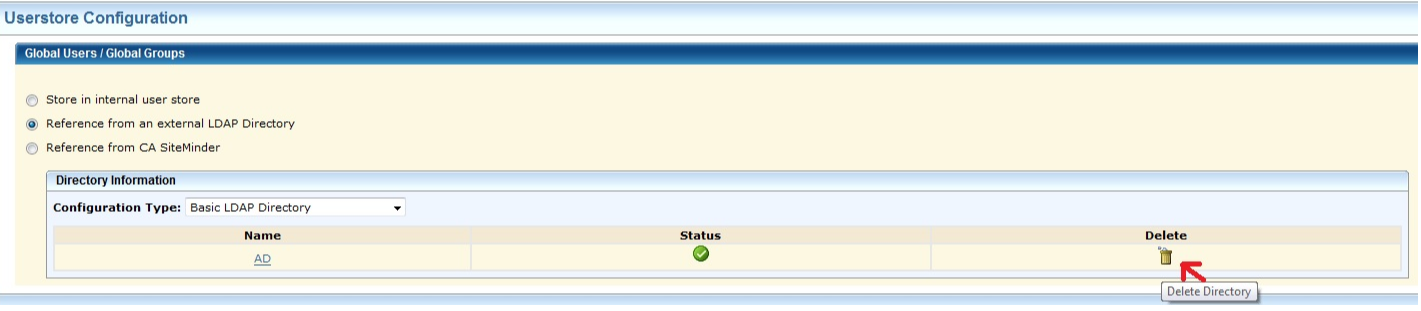 When deleting LDAP Directory Configuration and switch to Internal User Store, the browser hangs and in some cases the igateway process is killed abruptly.