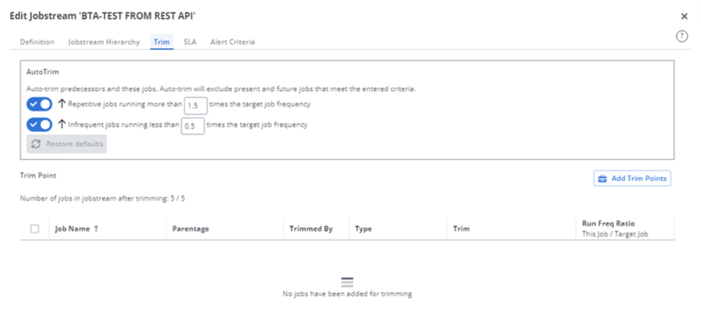 The Web UI does not reflect the AAI server side parameters for Trimming.