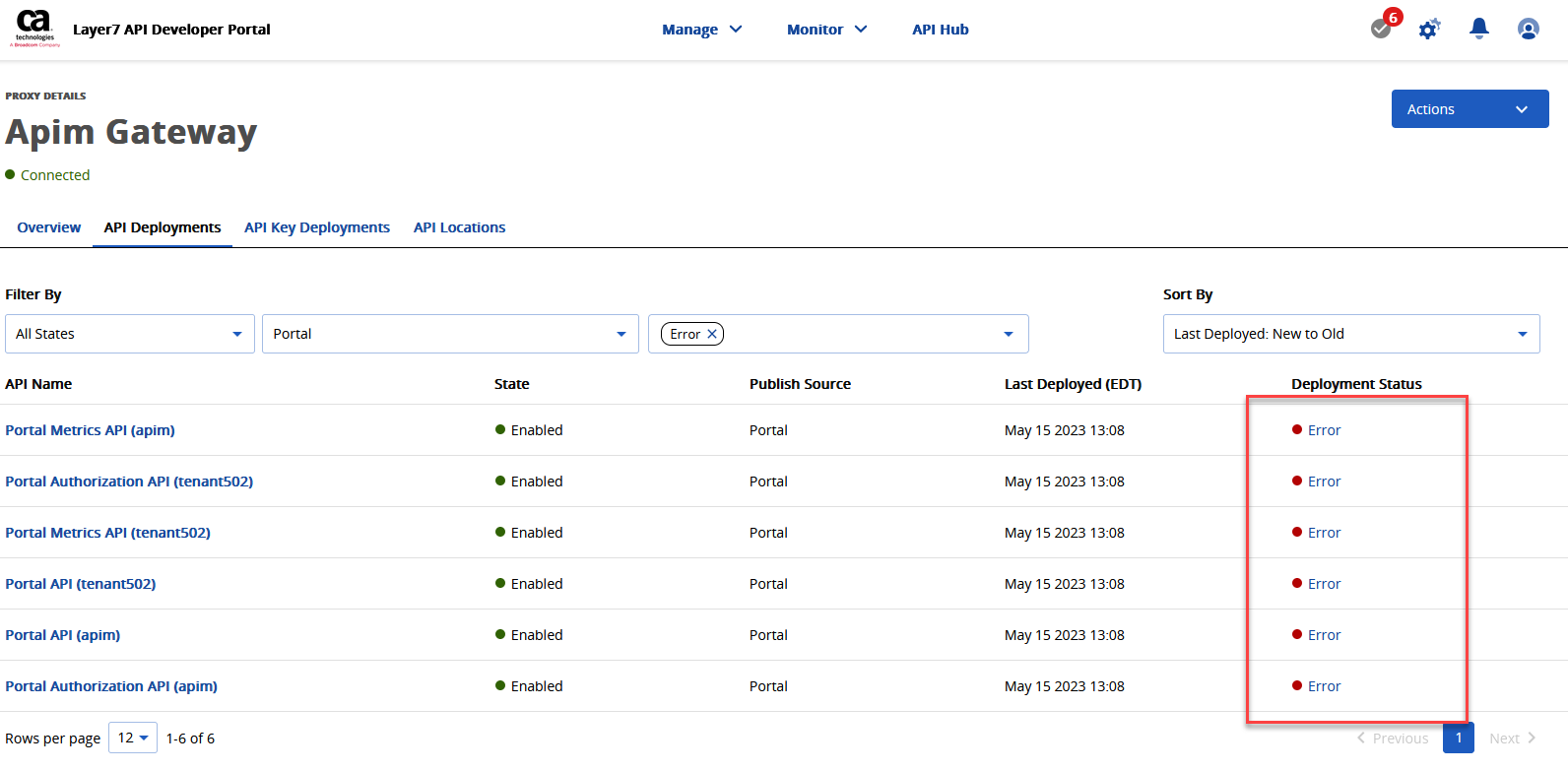 Deployment Status: Errors for apim tenant on Developers portal