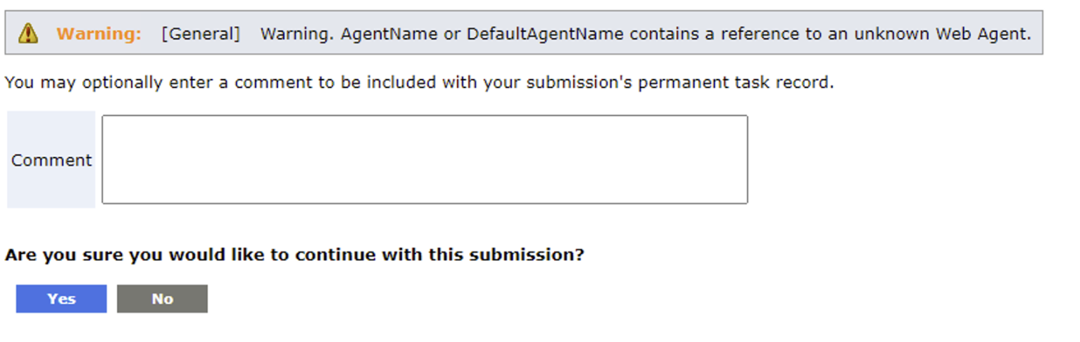 Once the AgentName was updated in the ACO, the agent no longer throws error