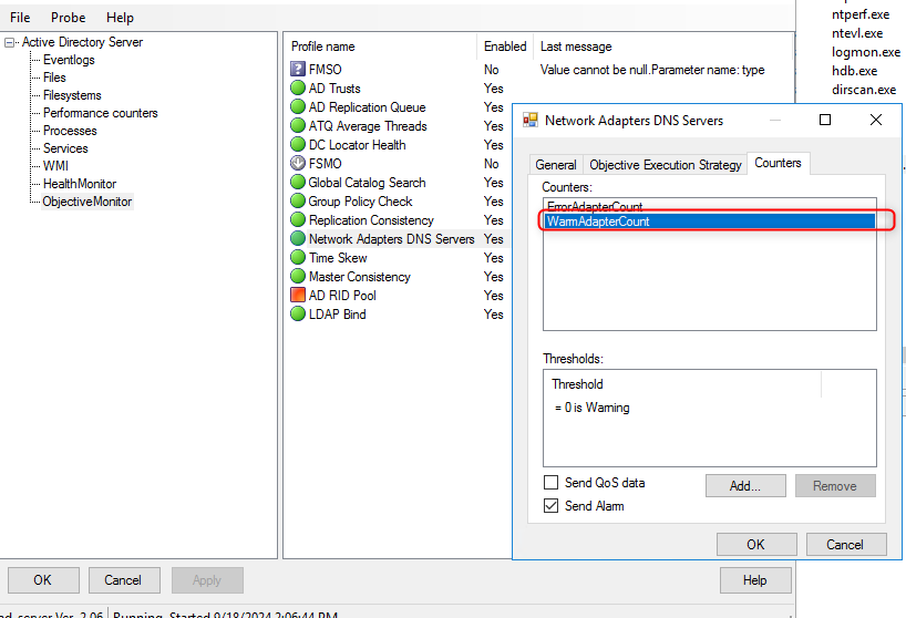 • for the ObjectiveMonitor>Network Adapter DNS Servers> Counter: "WarmAdaptercount"