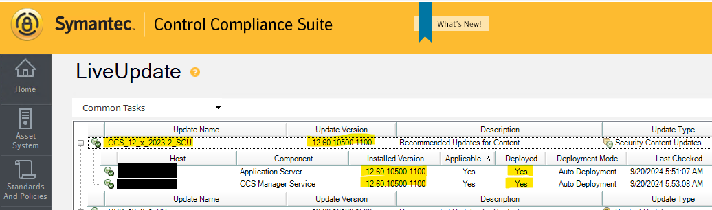 The remote CCS manager running the data collection does not have the same SCU applied as the CCS Application Server Verify that the CCS Application server is running at least SCU 2023-1 and that all CCS managers have the same SCU applied. Even managers that are not in a data collection role need to be at the same SCU version as the Application server. There are a couple ways to verify this, but usually the easiest way is in the CCS console go to Admin -> LiveUpdate, and look at the section CCS_12_x_20XX-X_SCU (the number will vary depending on the SCU version). Verify that the managers are at the same SCU level as the Application Server, and it has been deployed on the manager.
