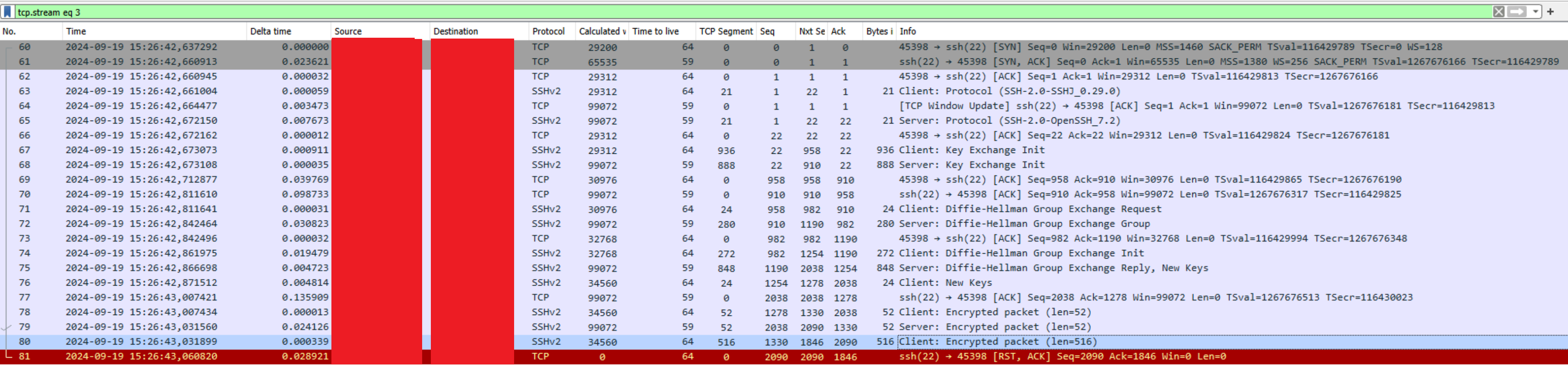 Packet capture showed correct 3-TCP Way Handshake with successful Client/Server Key Exchange including sending some of the Encrypted packet (Client/Server) where you could see a RST from Symantec Management Center