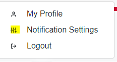 2. Click on down arrow next to the logged in user in the upper right hand corner and select "Notification Settings"