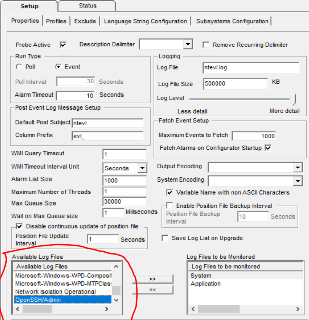 Probe only discovers and monitors logs that are displayed under Log Summary on the Windows Event Viewer page.
