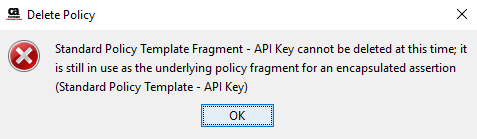Find out all polices that uses or includes the policy/fragment, remove all reference police/fragment then select the policy and use delete option to delete the policy/fragment.