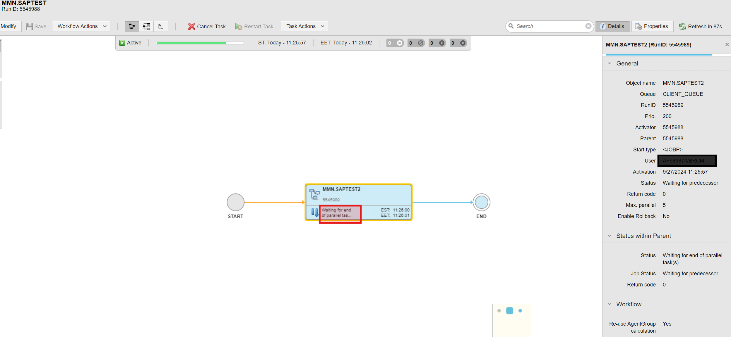 Upon starting the workflow again, it displays “Waiting for end of parallel jobs” instead of “Ready to start,” even though no parallel jobs are running.
