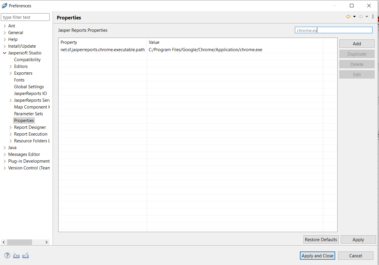 To resolve this error, configure below property in JasperSoft Studio and restart Studio.