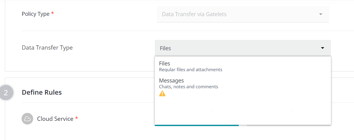 "Messages" option in Protect / Policy / Data Transfer via Gatelets is now available.
