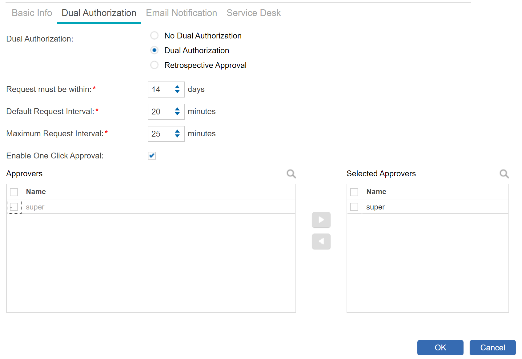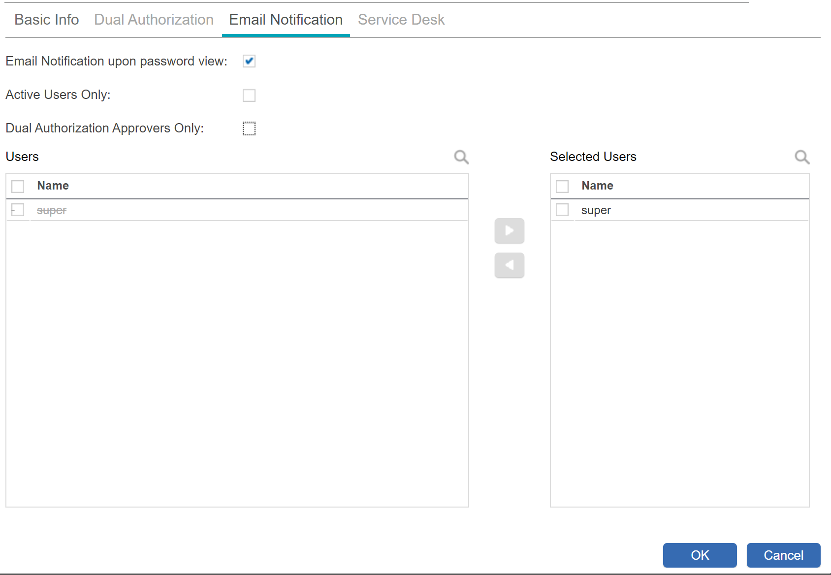 Below is the configuration of the Password View Policy - Dual Authentication and Email Notification.
