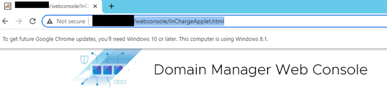When console is launched using thin console or using URL http://<SAM_IP>:<Port>/webconsole/InChargeApplet.html, users would see Domain Manager Web Console banner but no way they can connect to DM, see image: