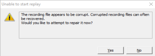 The recording file appears to be corrupt. Corrupted recording files can often be recovered.