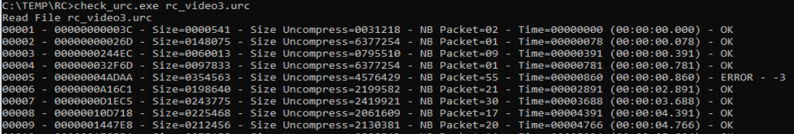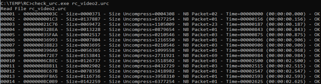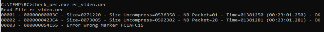 - rc_video3.urc has a corrupted chunk (chunk starts at offset 0x4ADAA) :