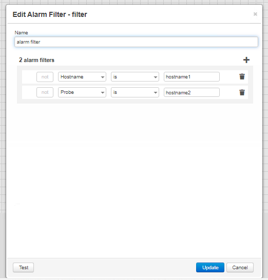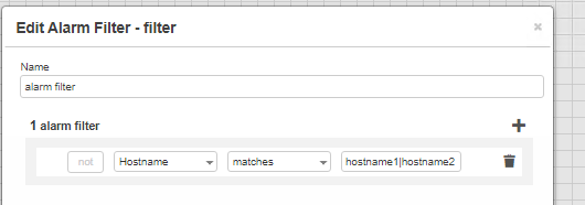 • For example, if you want the filter to show only alarms from either hostname1 OR hostname2 you can use the following filter: