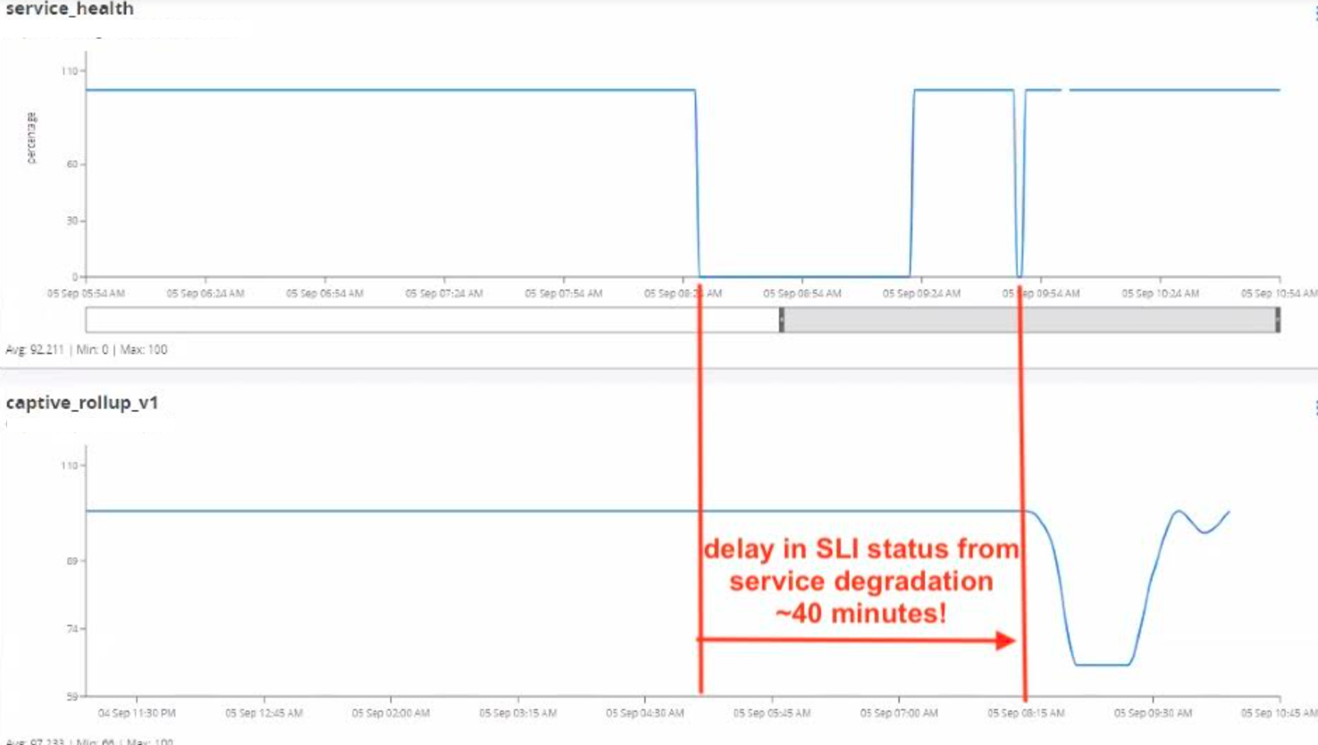 We have noticed that there is a delay in SLA status from service degradation, around 40 minutes