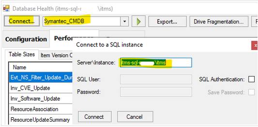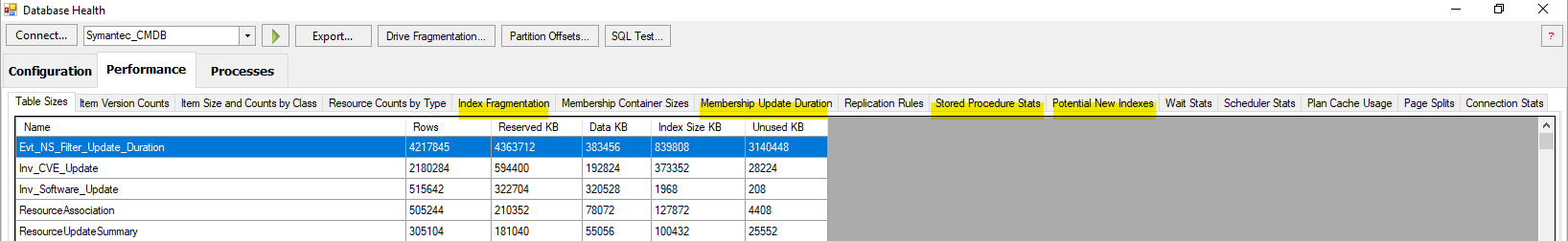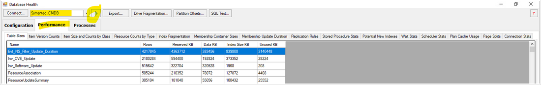 Click on "Health" tab and clieck on "Database Health"