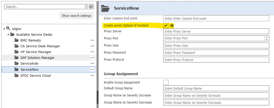 Even though the integration works and Events are created in SeviceNow, no custom mapping is available.