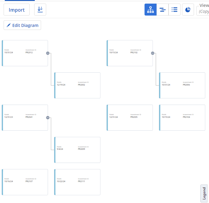 2. Import a few investments to the Hierarchy and build a relationship between the investments