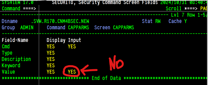 ** - NOTE: In case the SYSVIEW security file(CNM4BSEC) is shared across multiple instances in might take some time to become active due to caching. Cycling instance that use same security file it should force the change.