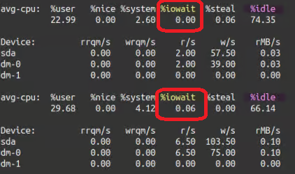 Look for the iowait column in the output. If the iowait value consistently exceeds 1.0%, it strongly indicates a storage latency issue."