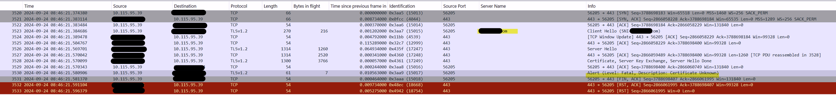 Getting access to the Symdiag output when the issue was reproduced allowed us to track all SSL sessions and confirm whether any failed. In our case, we identified a session to a cert signing domain (clue was in the name!) where the SSL handshake had failed on the client side. Suspecting some certificate pinning issues, the domain was added to the SSL interception bypass list.