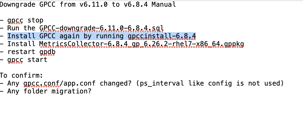 You might run into an issue where the gpmetrics.queries_history; gpmetrics.diskspace_history views were missing after downgrading from GPCC 6.11.0 to 6.8.4. All other tables and view were visible except gpmetrics.queries_history; gpmetrics.diskspace_history.