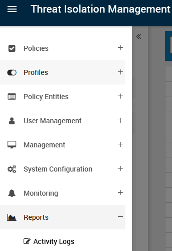 Going to Threat Isolation Management "Reports -> Activity Logs":