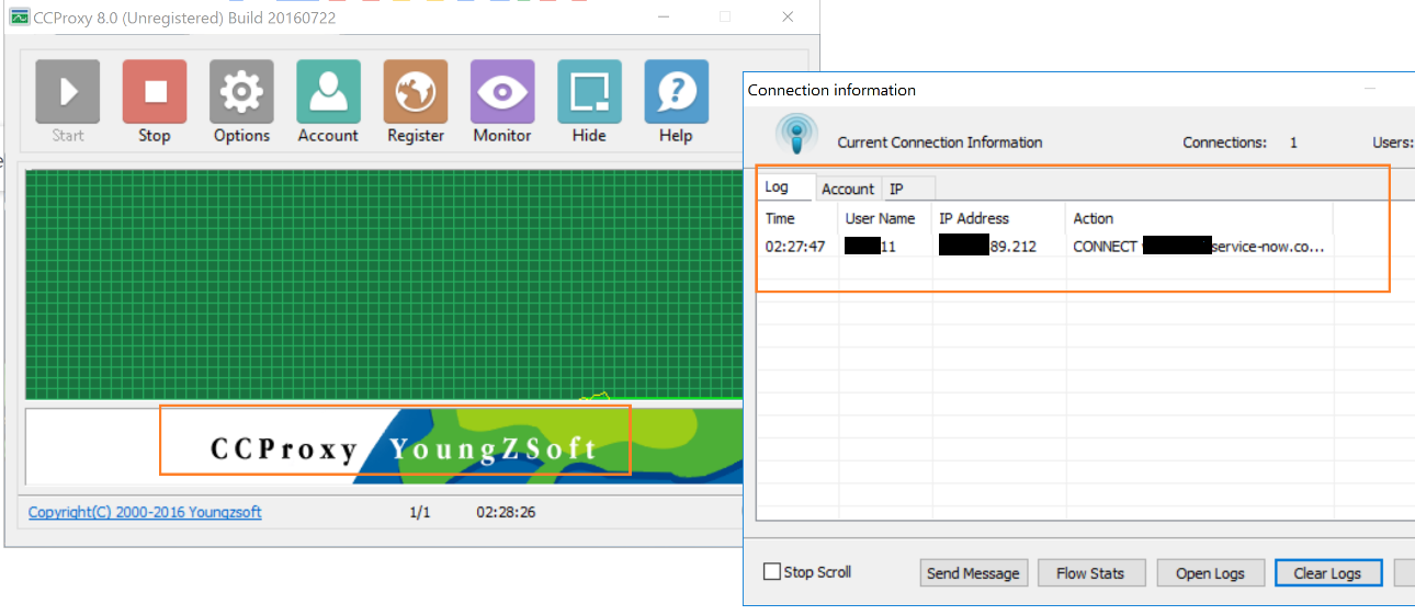 This is the CCproxy server screen where it was showing the time, user and ip address of the NIM request.