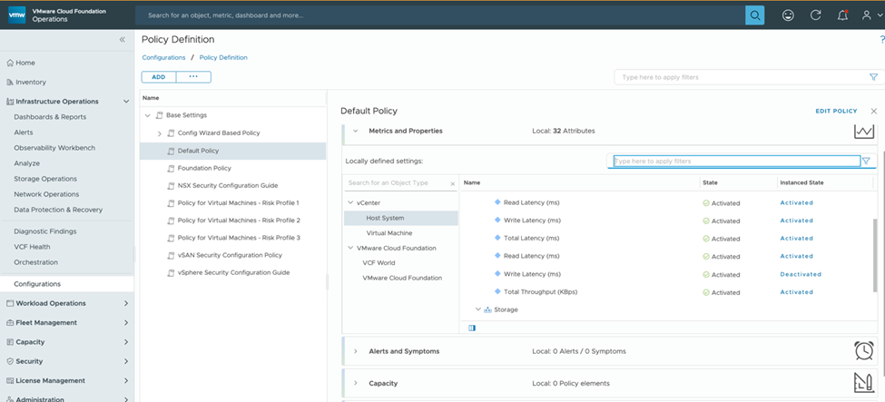 For Host System & Virtual Machine ensure that the following metrics are Activated